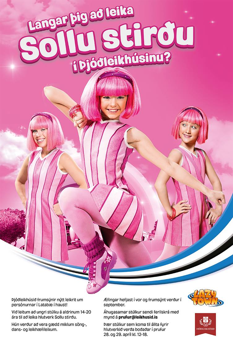 "I'm stepping into a preconceived role that everyone knows very well and I 'm doing my best to understand the role well for me. Solla is a lively and fun girl who began to be stiff but now and currently sings in Lazytown. I watched a lot of Lazytown myself as a child and now my nine years old sister is a fan. I'm just not prepared to tell her the news. Think she will be pretty happy that her sister will Solla. "