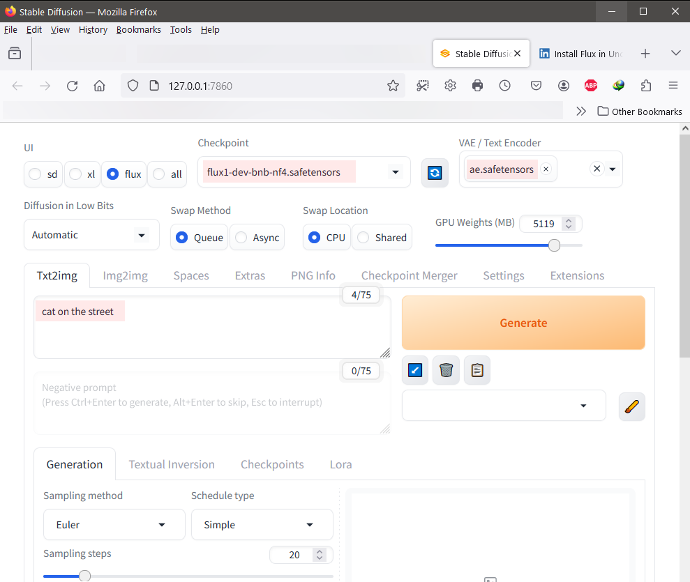 This is my result with the text "cat on the street"