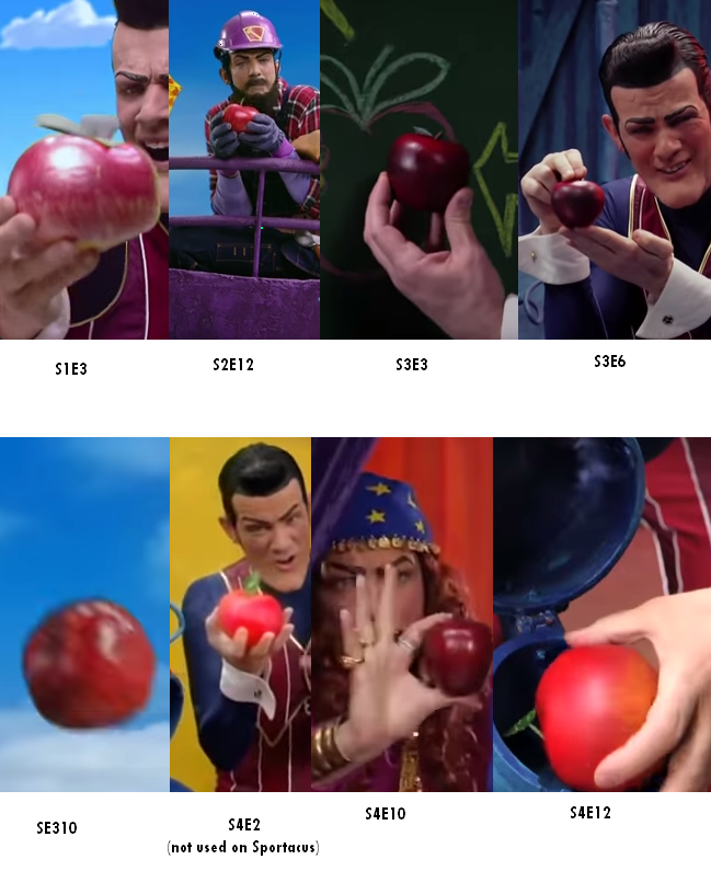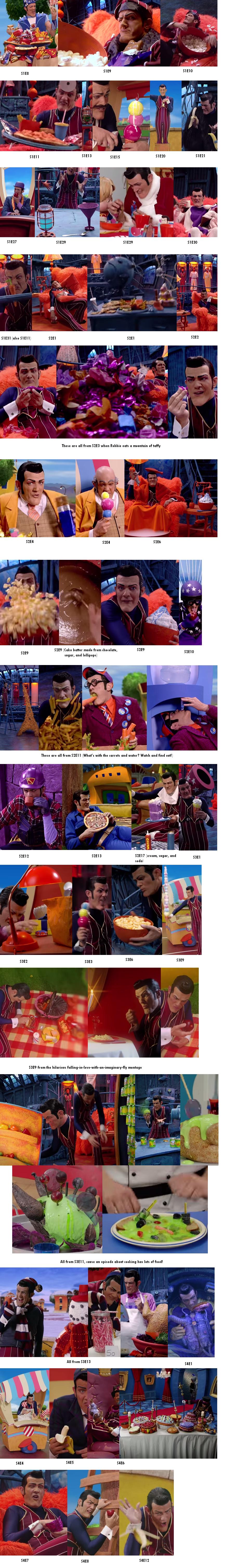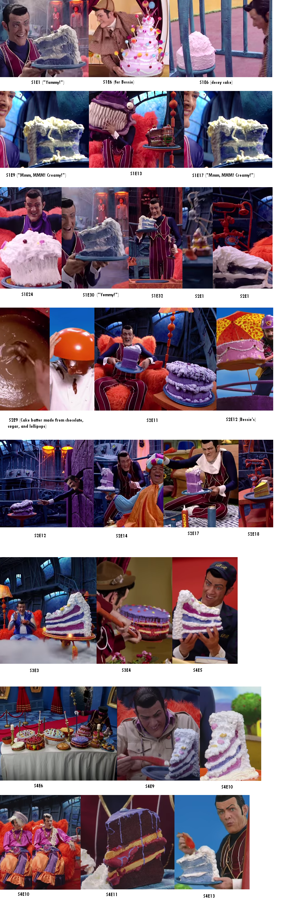 I spent about 8 hours the other day cataloging the kinds of cakes Robbie Rotten eats, as well as other foods and occasional interactions with sportscandy, as well as the different kinds of sugar apples. (I don't have every sportscandy interaction as I tried to limit it to when he tastes one or almost does, and didn't do LazyTown Extra but I probably will later.)
