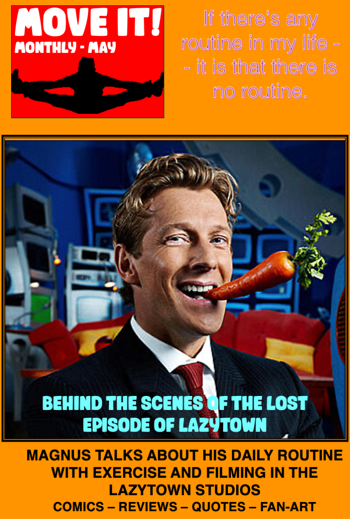 Move It Monthly is the best e-magazine for all your Sportacus and Magnus Scheving needs. Comics, quotes, reviews, fan-art, behind the scenes, recipes (coming soon... beware!) all at the MOVE IT MONTHLY MAGAZINE
