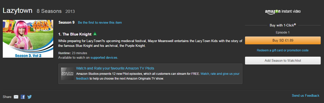 2. Lazy Town, Season 3, Volume 1: https://itunes.apple.com/gb/tv-seaso...-2/id981845905