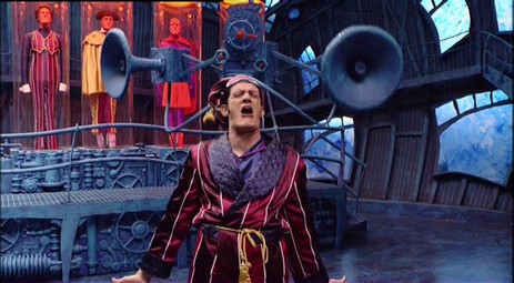 1. Sportacus is busy flying the airship. He uses various levers and wheels to make adjustments to his flight. In one shot we see him adjusting the fore and aft setting of the wing stabilisers. But then a moment later he uses another wheel to extend the wing stabilisers which were already extended in the previous shot.