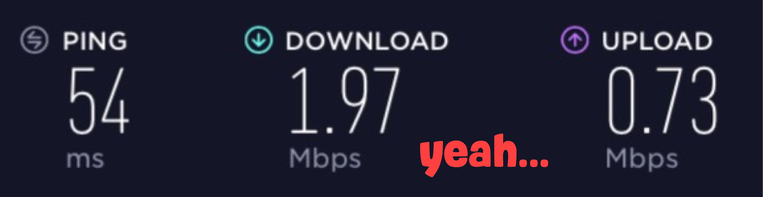 Yup. This is my actual house wifi. What I deal with everyday. I mean there are better wifi plans but it's super expensive here..