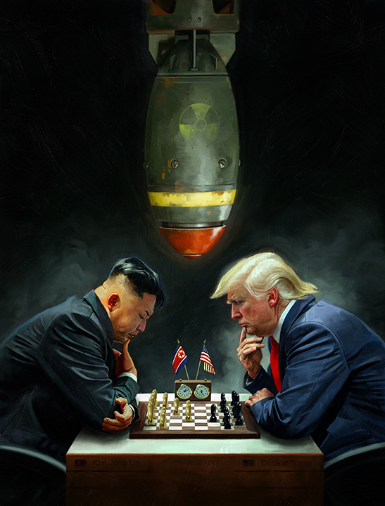 A fat tyrant with bad hair, fighting with a fat tyrant with bad hair.