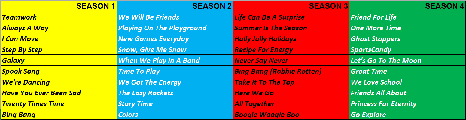 I know that there are many threads and posts about favorite songs but this thread dedicated only to your 10 favorite songs from each seasons. But remember put down your favorite songs in order, like if your most favorite song from S1 is "Bing Bang" then put it in 1 and the second one to 2 and etc... I used Excel and here is the screenshot: